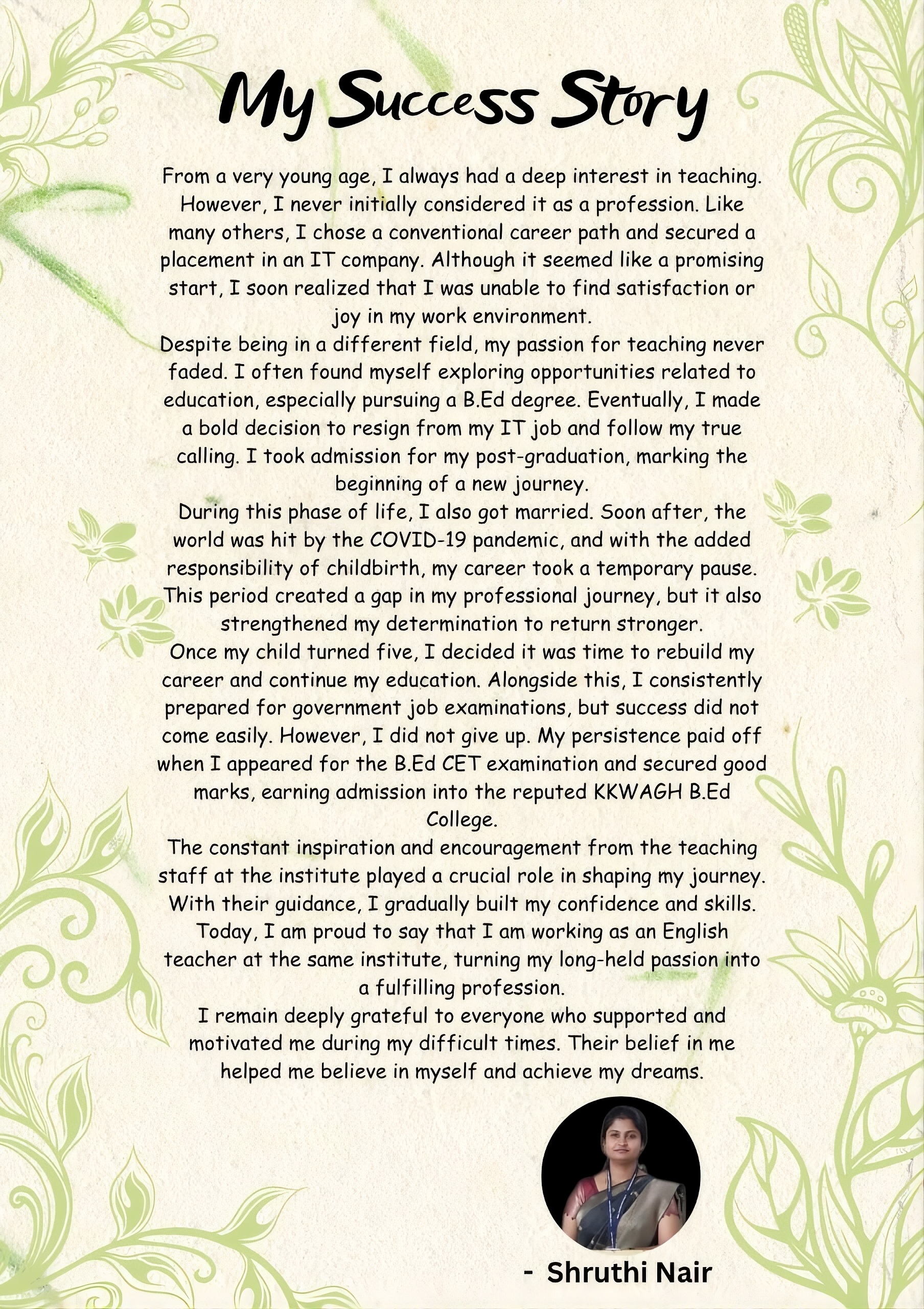 Dreams, when fueled with hard work and determination, transform into reality. My journey from being a B.Ed student to becoming a dedicated teacher is a testament to this belief.