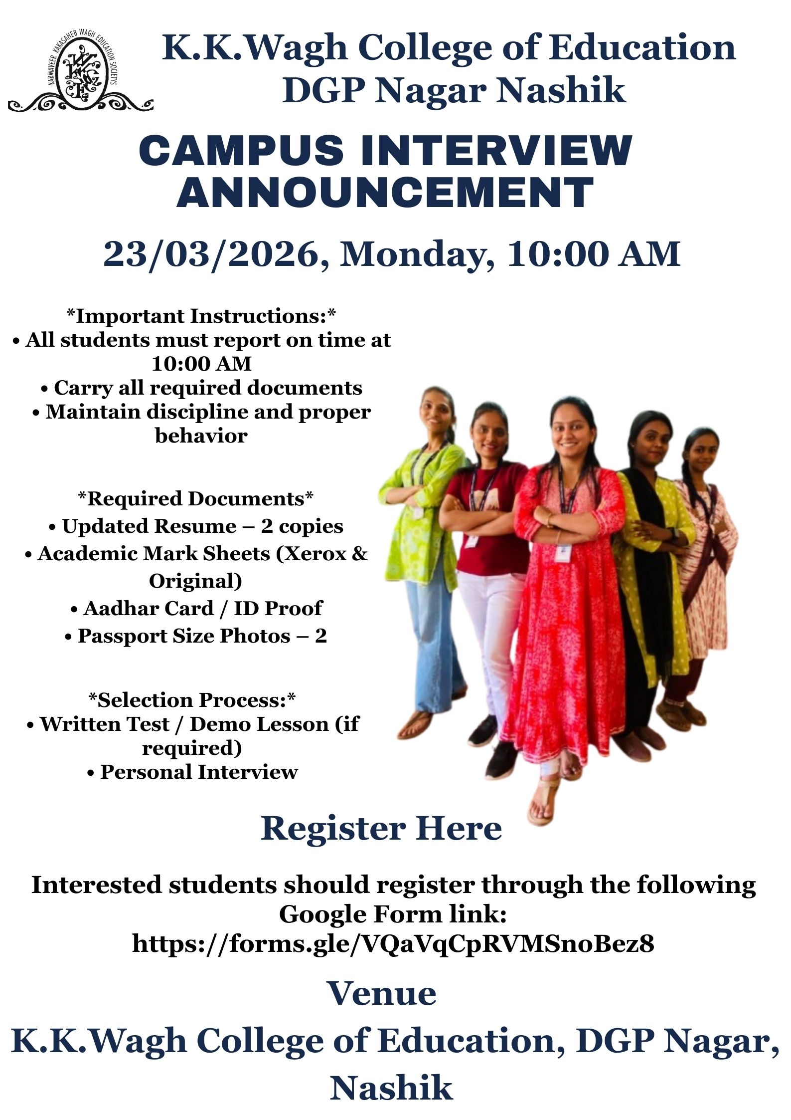 During this phase of life, I also got married. Soon after, the world was hit by the COVID-19 pandemic, and with the added responsibility of childbirth, my career took a temporary pause. This period created a gap in my professional journey, but it also strengthened my determination to return stronger. Once my child turned five, I decided it was time to rebuild my career and continue my education. Alongside this, I consistently prepared for government job examinations, but success did not come easily. However, I did not give up. My persistence paid off when I appeared for the B.Ed CET examination and secured good marks, earning admission into the reputed KKWAGH B.Ed College.