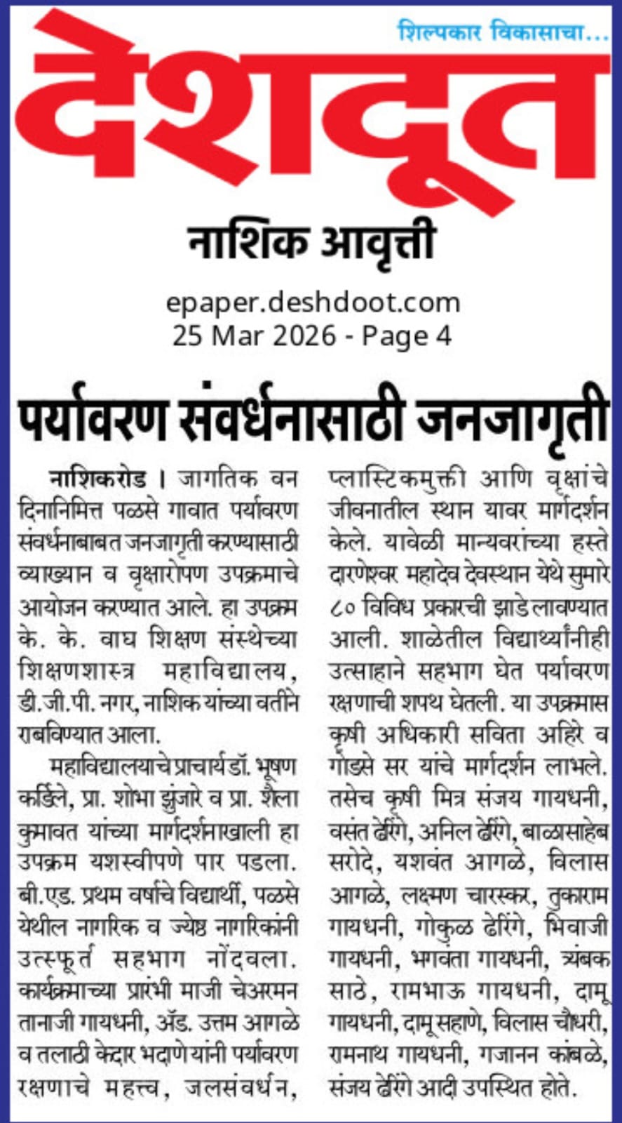 नाशिक पळसे येथे पर्यावरण संवर्धन जनजागृती वृक्षारोपण कार्यक्रम २०२६